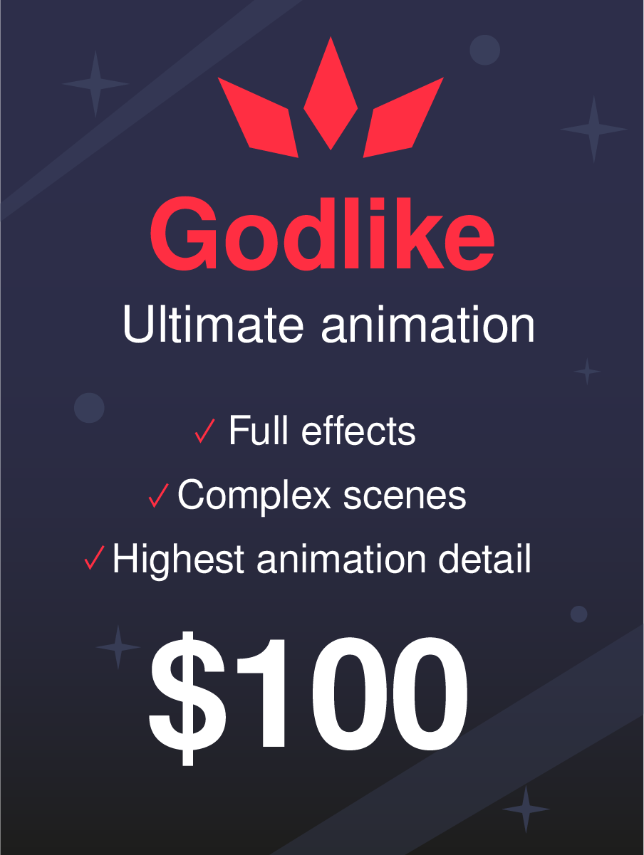 Godlike Tier is the highest animation level in Asakura Studio. It offers the maximum animation quality and detail available.